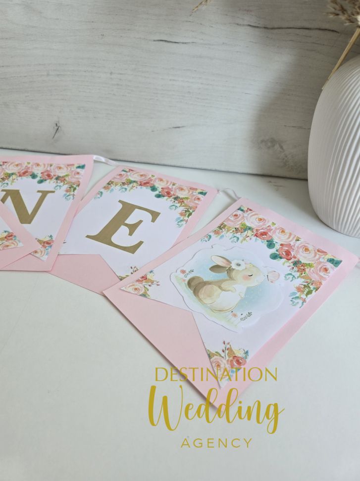 🎀 Банер за рожден ден „ONE“ – Зайче в розово