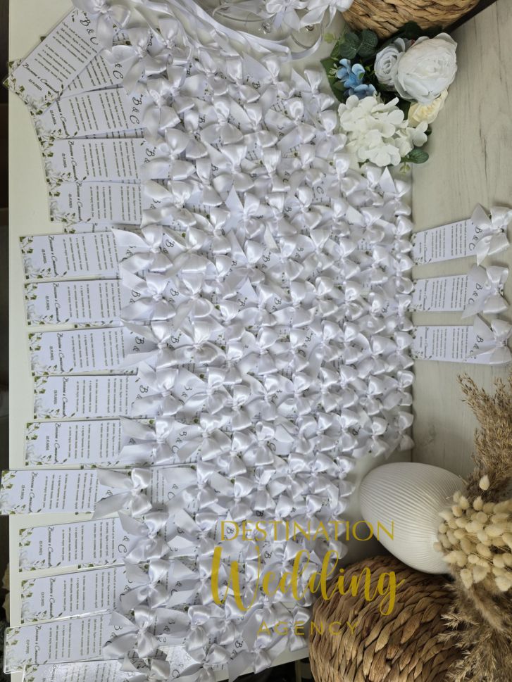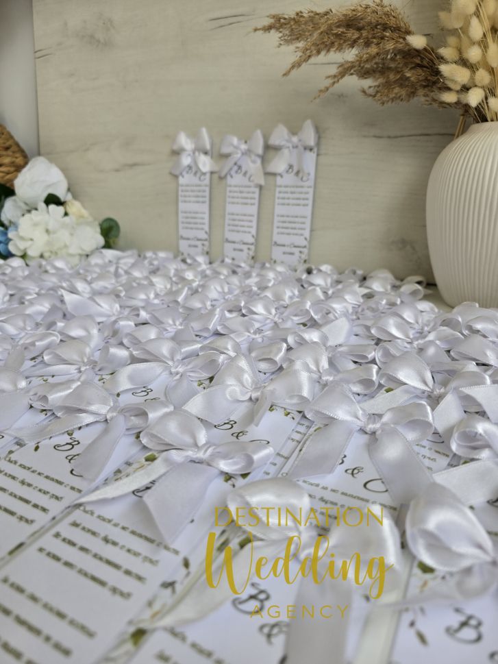 Книгоразделител с панделка бял дизайн – подарък за гостите на сватбата
